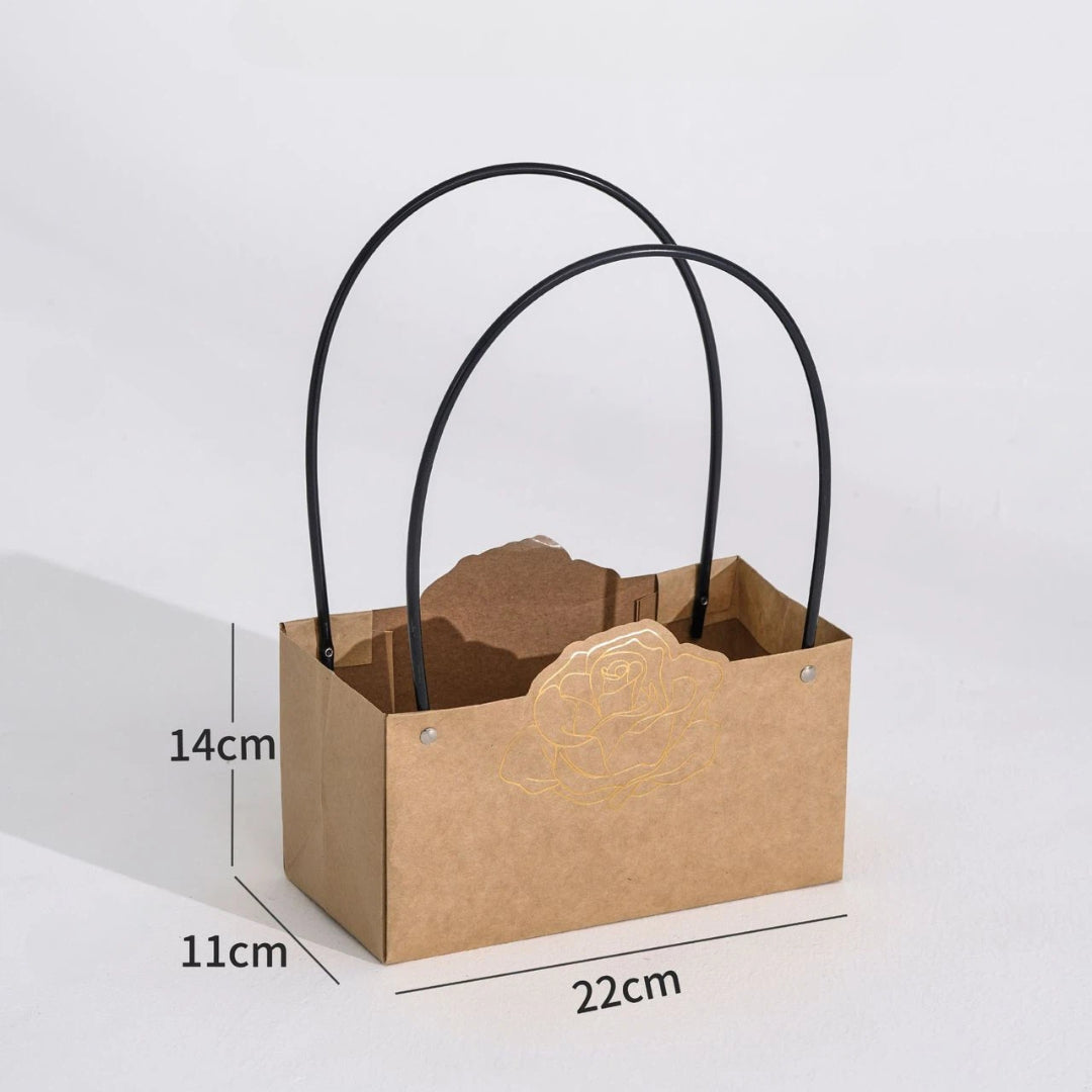 Rose Foil-Stamped Flower Bag Brown (22x11x14cmH) Pk5